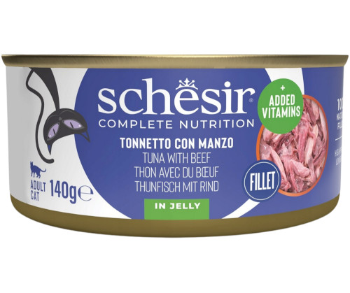 Pełnowartościowa, mokra karma dla dorosłych kotów. Na bazie tuńczyka, wołowiny i ryżu.Charakterystyka karmy Schesir dla kota