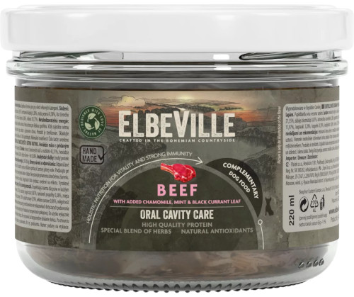 ELBEVILLE DOG ORAL CAVITY CARE MOKRA KARMA DLA PSA wołowina z rumiankiem, miętą i liśćmi czarnej porzeczki