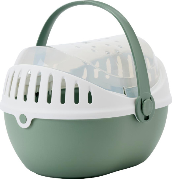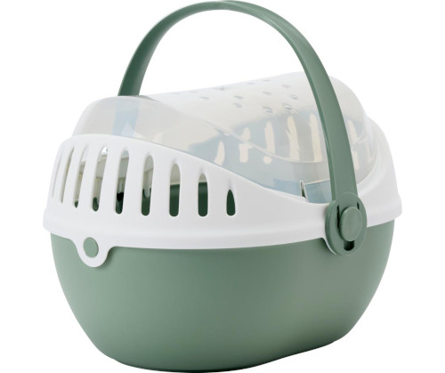 Otwierana od góry klapka transportera, umożliwia wygodne wyjęcie ulubieńca. Zapewnia też gryzoniowi bezpieczeństwo, uniemożliwiając mu ewentualną ucieczkę. Blokada na uchwycie zapobiega bujaniu transporterem w czasie noszenia ulubieńca. Skrzynka jest wygodny w noszeniu, dzięki stabilnej rączce.