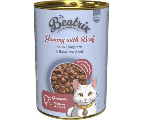Smaczne kawałki wołowiny w soczystym sosie zapewniają pożywny i kuszący posiłek każdego dnia. Formuła nadaje się zarówno jako samodzielna karma, jak i jako dodatek do krokietów i zapewnia zbilansowaną codzienną dietę.Cechy karmy Beatrix z wołowiną w sosie: