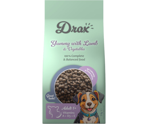 Przepis z jagnięciną i warzywami jest lekkostrawny i smaczny, idealny do codziennego odżywiania, witalności i zdrowego trawienia.Zalety karmy Drax: